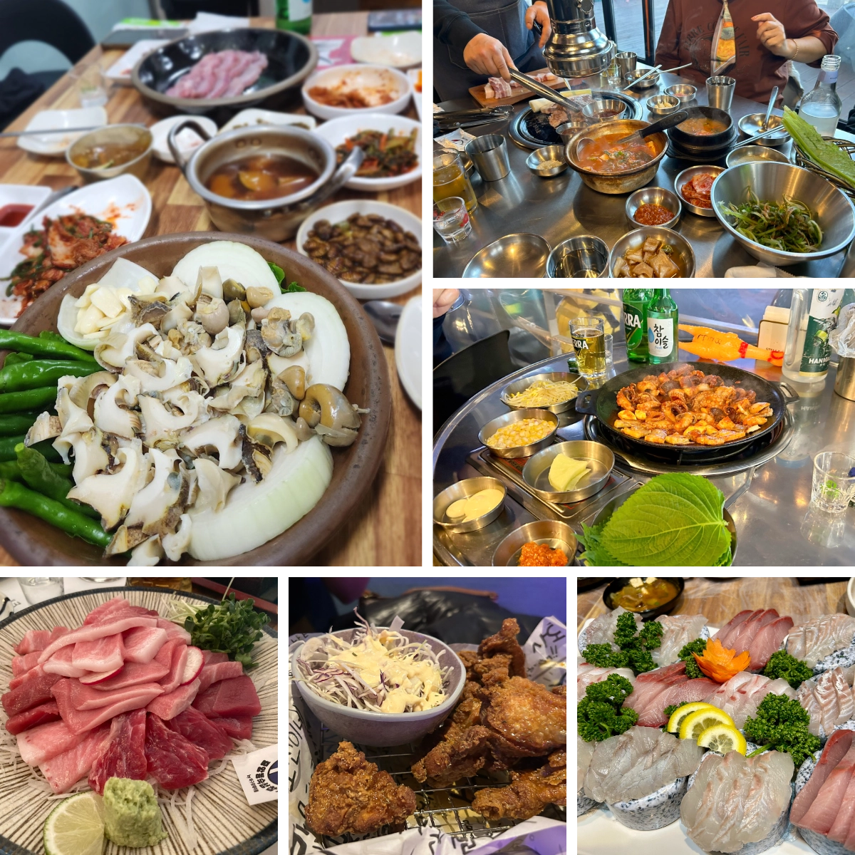 That’s where dajjijip (다찌집) comes in, especially in coastal cities like Tongyeong. In these bars, you order alcohol and generous seafood dishes arrive automatically. With each new round, something different appears. You pay for the drinks, and the table slowly fills until it feels almost excessive. The experience is less about ordering and more about being taken care of.